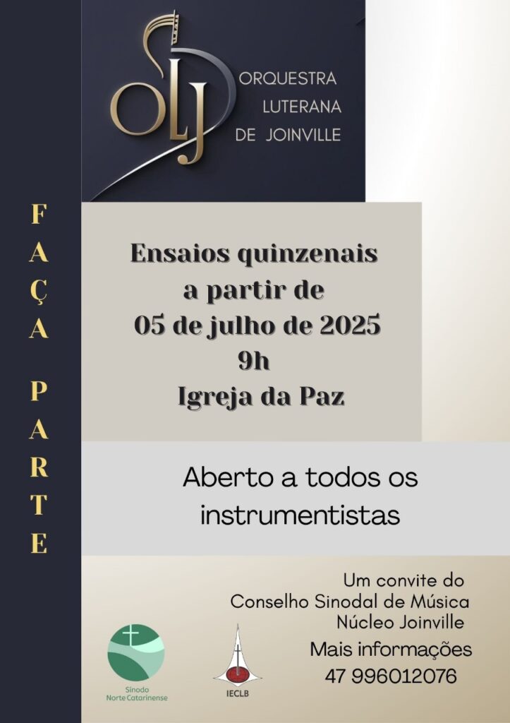 Por isso criamos a ORQUESTRA LUTERANA DE JOINVILLE para executarmos música em conjunto, na igreja com repertório da igreja e além dela.